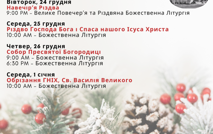 Розклад Різдвяних Богослужінь